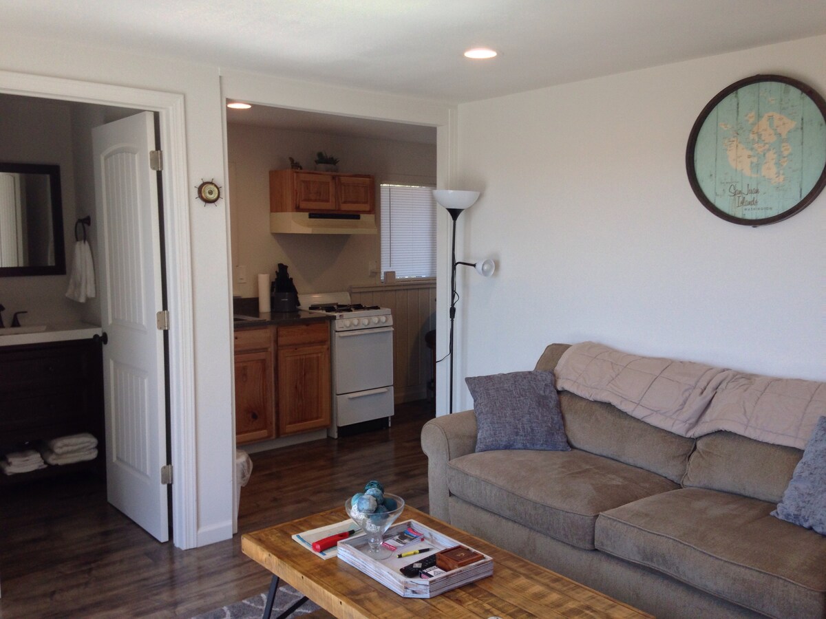 Komdu og gistu í nýbyggðu einkasvítu okkar fyrir gesti sem er aðliggjandi aðalhúsinu en er mjög persónuleg. Sérinngangur í gegnum veröndina eða sameiginlega anddyrið. Baðherbergi með upphituðu flísalögðu gólfi og rammalausri sturtuhurð úr gleri. Queen size rúm, setustofa með ástarsæti. Flatskjásjónvarp + þráðlaust net Dúkur með borði og stólum. Í eldhúskróknum er lítill ísskápur, Nespresso-vél, brauðristarofn, örbylgjuofn, frönsk pressa og rafmagnsvatnsketill. Nálægt Moran State Park, Rosario og Doe Bay Resort.