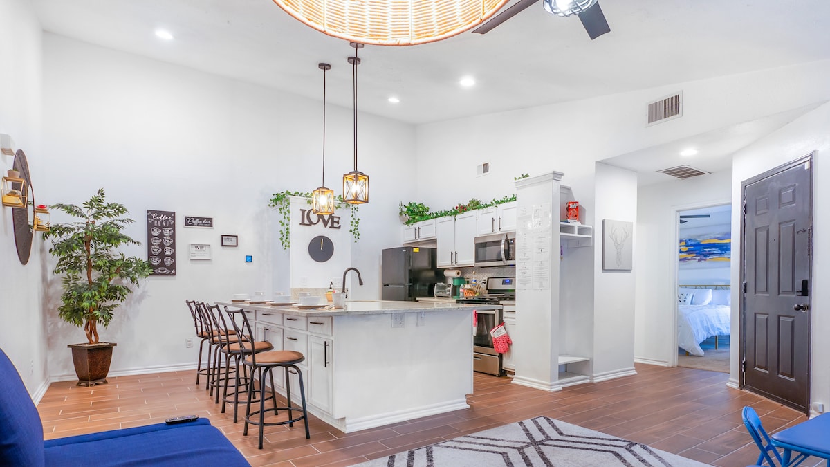 * 13 mínútur að Riverwalk | 5 mínútur til SA-flugvallar | 15 mínútur til Med. Center | 30 mínútur til Sea World | 5 mínútur til Morgan 's Wonderland | Auðvelt aðgengi að I-410 og Hwy 281 * 1 King ensuite | 2 Queen herbergi | 1 sófi í sameign * Snjallsjónvörp * Hernaðarafsláttur (spyrjast fyrir bókun, framvísa þarf myndskilríkjum) * Vinna að heiman | 300 mbps háhraða wifi + hollur vinnustöð Sendu mér skilaboð hvenær sem er! ** Engin dýr leyfð undir neinum kringumstæðum **