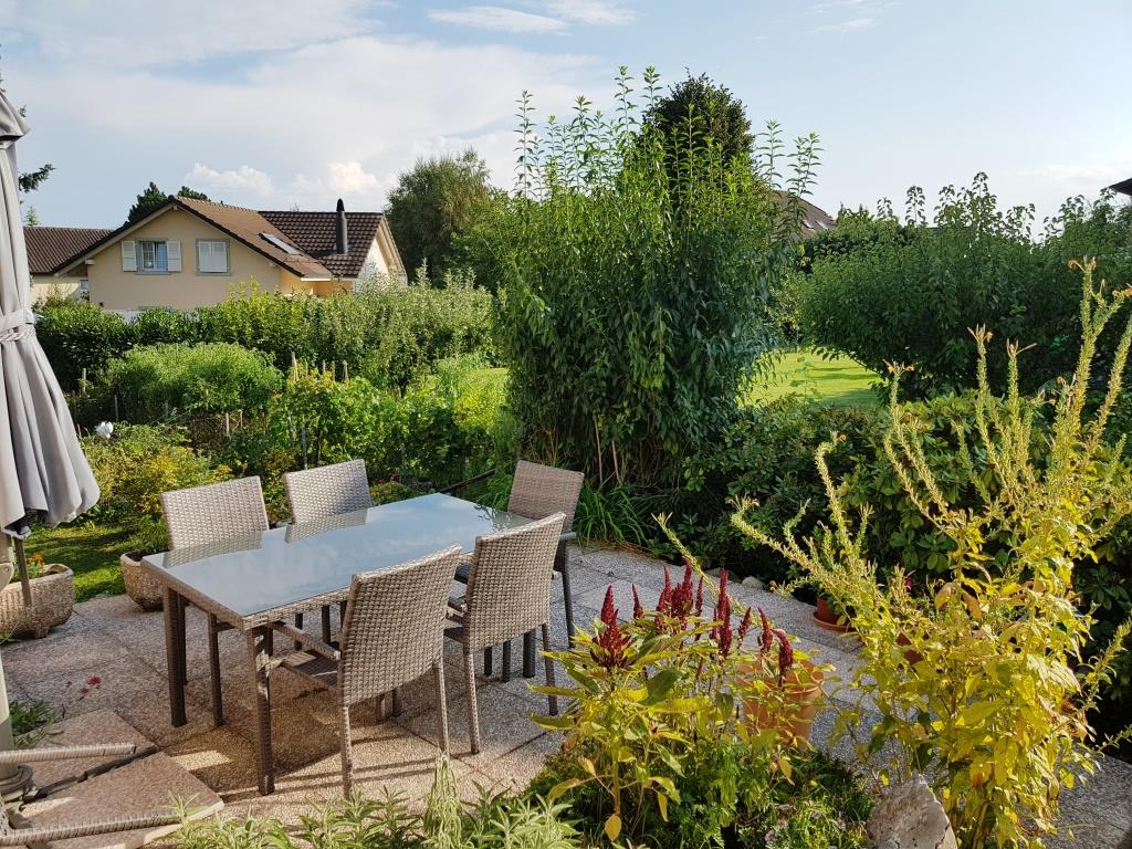 Lúxus 4 herbergi sem eru fullkomin fyrir náttúruunnendur og langar gönguferðir. Hér eru hágæðaþægindi, þrjú stór svefnherbergi, þar á meðal eitt í hjónaherbergi með sturtuklefa, fallegt eldhús og mjög stór stofa með arni. Grill, pétanque, heitur pottur í stóra heita pottinum (1 metri 20 sinnum 2 metrar) á baðherberginu á neðri hæðinni... í 1/4 klst. akstursfjarlægð frá Gland eða Allaman hraðbrautinni til að kynnast fegurð Genfarvatns.