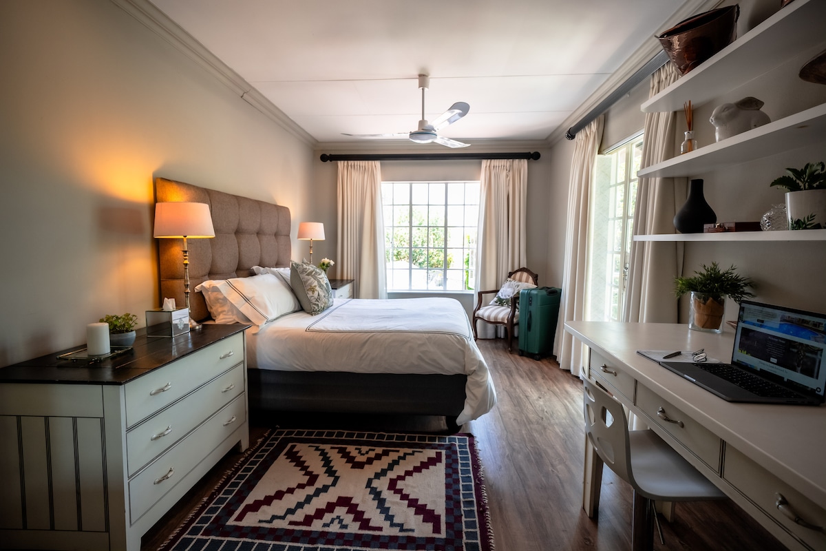 Welcome to Crown Loft, the premier residence apartment at Chaplin Manor. Inside, enjoy a spacious layout featuring a fully equipped kitchen, fast WiFi, a dedicated workspace, & inviting living area with TV & Netflix. Perched at the highest point, this airy home offers exclusive balcony access from the large bedroom, with leafy views and a calming atmosphere. Solar power and complimentary housekeeping help you focus on what matters most, whether it’s work, rest, or a little of both.