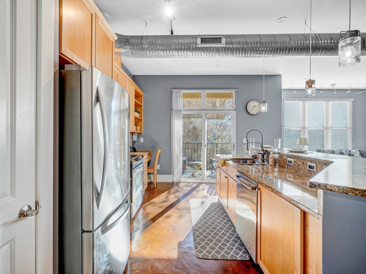 Þessi fullbúna íbúð með einu svefnherbergi „bílskúr“ er aðliggjandi við aðalheimilið okkar en þú verður með þinn eigin sérinngang! Þú getur gert ráð fyrir því að þetta sé heimilið þitt í fjarlægð frá heimilinu þar sem hugsað er um allt hagnýti og nauðsynjar. Engar tröppur eru nauðsynlegar við innganginn á jarðhæð nema fyrir tvo litla fyrir framan dyrnar. Vinsælt fyrir styttri dvöl en hentar meira en fyrir lengri dvöl, með nægri geymslu, samstæðu W/D, þéttum D/W og sérstöku loftræstikerfi. Ótrúleg staðsetning!