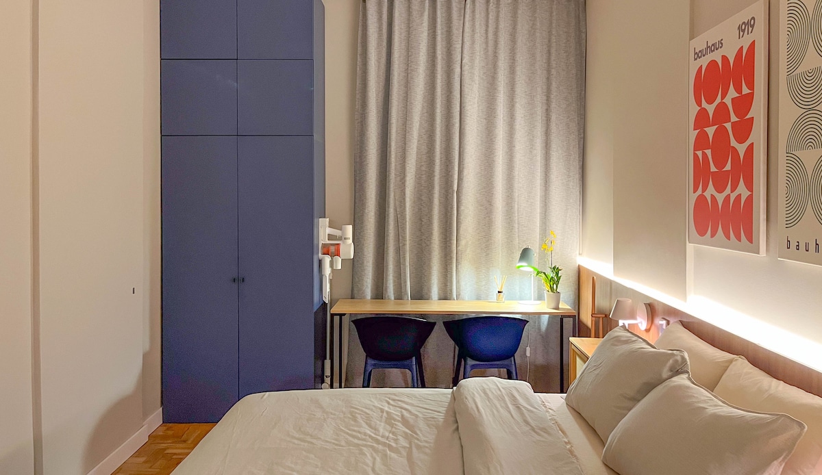 Vel skreytt og stór íbúð staðsett fyrir framan Cantagalo neðanjarðarlestarstöðina. Svíta með klofnu, king-size rúmi, vinnustöð og mjög stóru baðherbergi. Herbergi með loftkælingu, hjónarúmi og stóru félagslegu baðherbergi. Fullbúið eldhús, stór stofa og borðstofa. Ég hef leigt gestaherbergið í íbúðinni minni í mörg ár og nú hef ég ákveðið að leigja alla íbúðina þegar ég er á ferðalagi. Ég vona að þú sjáir um það eins og það sé þitt. Í húsinu er dyravörður allan sólarhringinn.