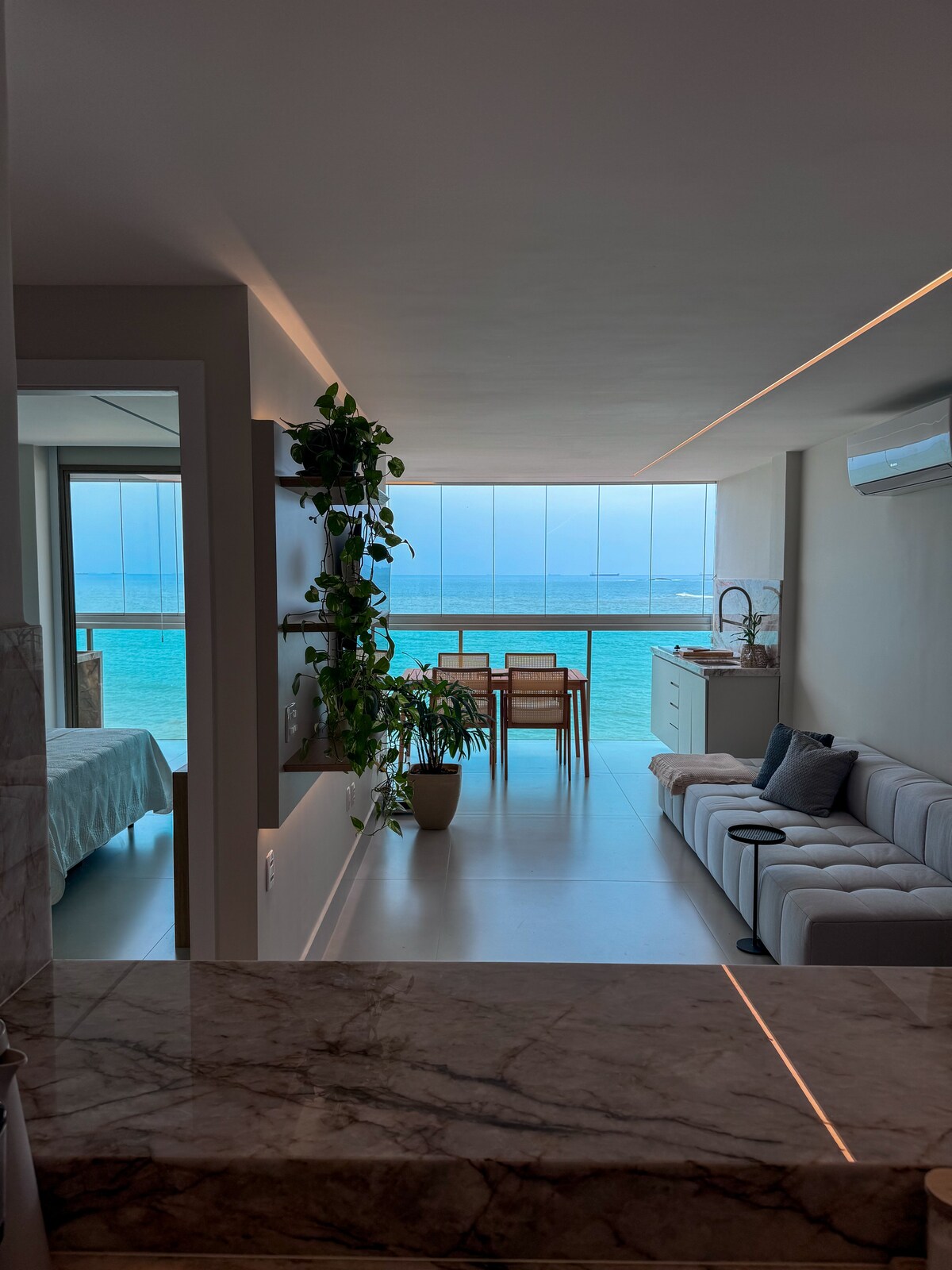 Apresentamos um flat incrível, projetado com atenção aos mínimos detalhes para proporcionar a estadia perfeita, com vista privilegiada para o mar. Tudo foi pensado para garantir conforto e praticidade: • Infraestrutura completa e equipada, ideal para estadias de médio e longo prazo. • Wi-Fi de alta velocidade (500 Mbps) para manter você sempre conectado. • Localização estratégica com diversas comodidades no térreo: mini mercado, padaria e farmácia.