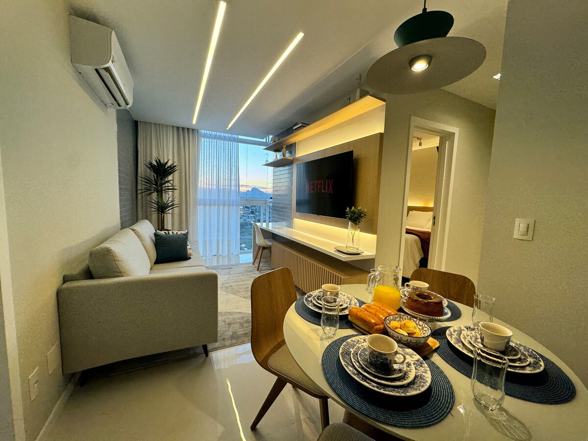 Deslumbrante vista panorâmica da cidade de Vitória, com localização privilegiada: próximo a supermercados, padarias, farmácias, bares e excelentes restaurantes. O apartamento está bem equipado e dispõe de uma adega com vinhos disponíveis para compra. O condomínio é familiar, com portaria 24 horas, e oferece uma área de lazer completa para uso dos hóspedes. Além disso, a proximidade de pontos de interesse como shopping, aeroporto, parques e praia, todos localizados entre 1 a 5 km de distância.