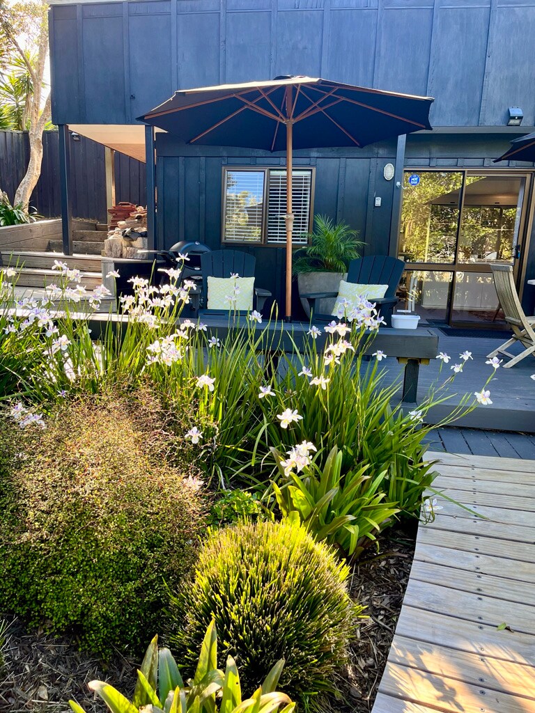 *Fallegt stúdíóherbergi og aðeins 7 mínútna göngufjarlægð frá Onetangi-strönd. *Gakktu að: Stonyridge, Tantalus, Te Motu, Casita Miro, Wild on Waiheke, Obsidian, Heke Garden Bar og Postage Stamp Wines - allt innan 20 mínútna. *Three Seven Two, Ki Maha og Charlies veitingastaður og krár á ströndinni í 10 mínútna göngufæri. *90 metra göngufjarlægð frá strætóstoppistöðinni. Fyrir fólk sem elskar að borða úti! (þ.e. engin eldhúsbúnaður nema te, kaffi og vín í kæli :)
