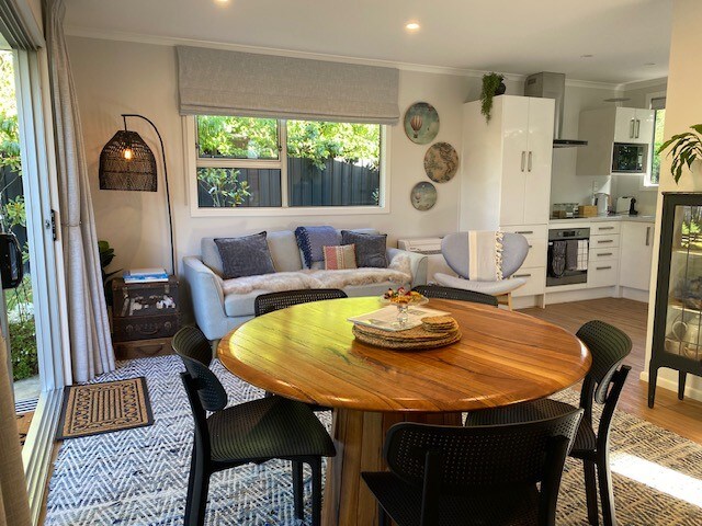Enjoy a renovated, fully-equipped & stylish 2-bedroom home (with queen-sized luxury beds) in close proximity to Masterton's centre. From a relaxing retreat for up to four; to an easy-living space for a small family; to an urban pad to base yourself after a hard day's work or shift, this place has it all. Off-street parking, private outdoor spaces for dining and access to across-the-road spa facilities or a pool in Summer (on request) are on offer. See all photos. Breakfast supplies provided.