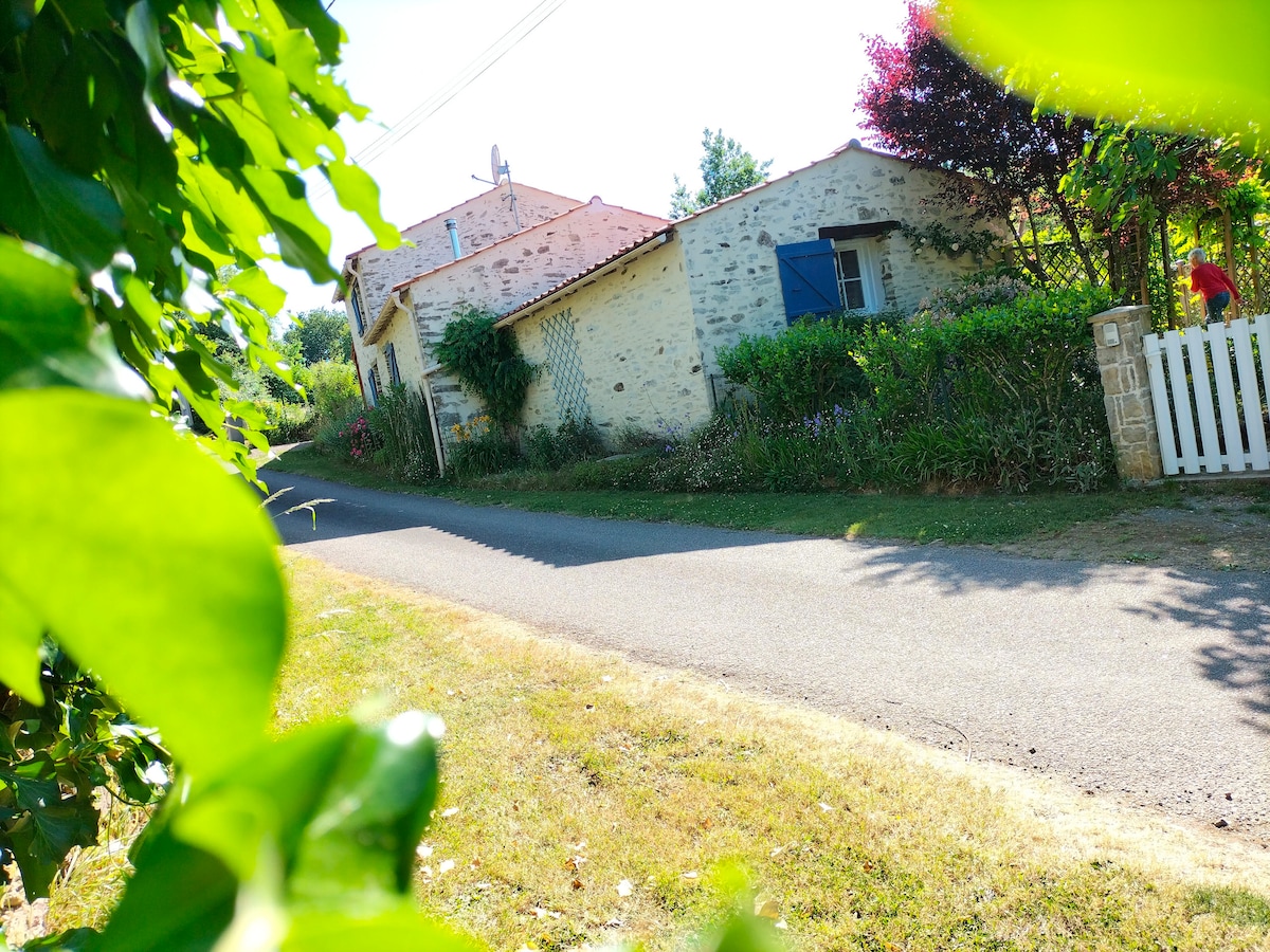 Fallegt hús með persónuleika, algjörlega endurnýjað og staðsett í sveitasetri í Vendée, 18 km frá sjó með HEITA POTTI (jacuzzi). Handklæði, þrif á gistingu við brottför, rúmföt, 2 viskustykki, 4 baðmottur og notkun á nuddpottinum eru innifalin. Tengd rafmagnshitun. Tómstundagarðar: O'Fun Parks 0'Gliss 6 km Les Sables d 'Olonne 35 km. Le Puy du Fou 70 km.