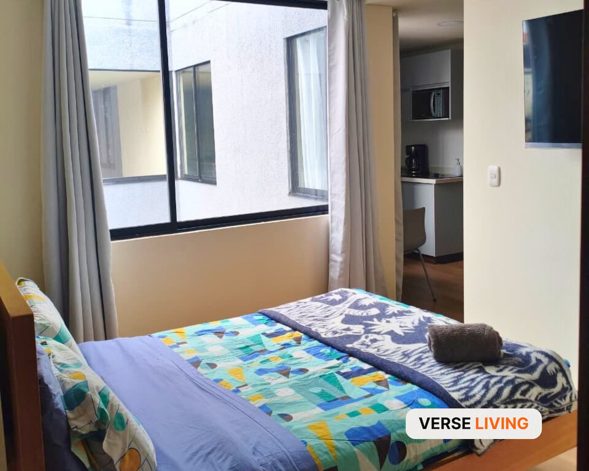 Kynnstu Bogotá í þessari nútímalegu og þægilegu íbúð með einstakri einkaverönd á svæðinu sem er fullkomin til að njóta sólsetursins, lesa, vinna utandyra eða deila nótt með arni. Frábært fyrir pör, stafræna hirðingja og ferðamenn sem eru vel staðsettir nálægt ferðamannasvæðum, veitingastöðum og almenningssamgöngum. Uppbúið eldhús, hjónarúm og skrifborð fyrir ógleymanlega dvöl Þessi staður er með stefnumarkandi staðsetningu - það verður mjög auðvelt að skipuleggja heimsóknina!