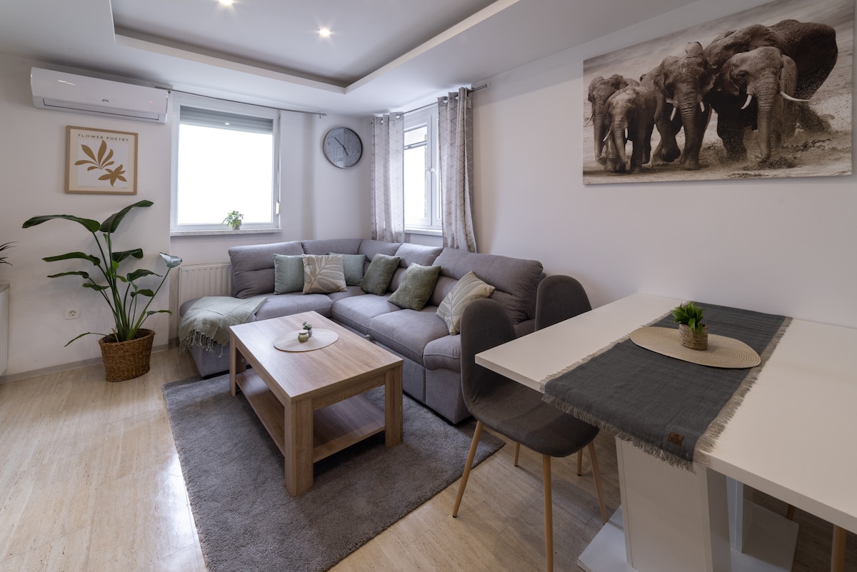 Stílhreina íbúðin okkar er staðsett í hjarta Solčava og býður upp á fullkomna blöndu af þægindum og þægindum fyrir dvöl þína. Hvort sem þú ert hér vegna viðskipta, rómantískrar ferðar eða ævintýraferðar er þessi eign hönnuð til að vera heimili þitt að heiman. Staðsett í friðsæla hverfinu, þú ert steinsnar frá bestu stöðunum á svæðinu (Logar Valley o.s.frv.), veitingastöðum og nálægt versluninni á staðnum, líkamsræktarstöðinni og táknrænu gotnesku kirkjunni. Við hlökkum til að taka á móti þér!