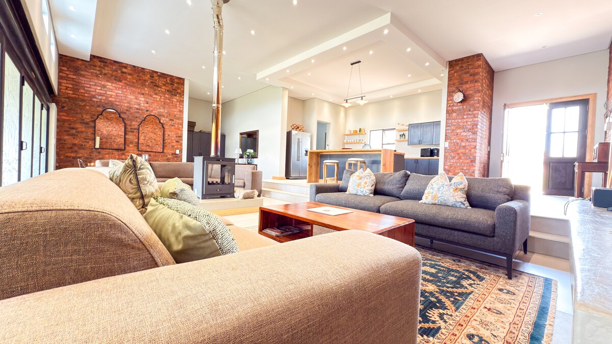 Highland Peace Haven is a spacious 3-bedroom retreat designed for comfort and relaxation. Unwind in extra king-size beds with luxurious Egyptian cotton linen and electric blankets for cosy nights. Enjoy the indoor fireplace, fast Wi-Fi, Netflix, and a reliable backup inverter system. The open-plan living area flows onto a covered patio with a built-in braai and pizza oven, plus a full-size pool table with a table-tennis top—perfect for family fun and relaxed evenings.
