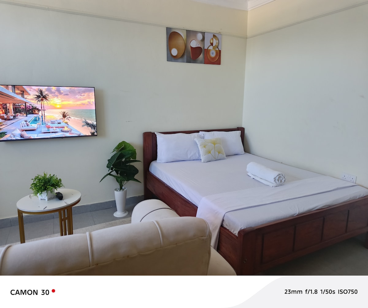 Gistu í þessari nútímalegu og þægilegu stúdíóíbúð í Changamwe sem er frábærlega staðsett nálægt flugvellinum og SGR-lestarstöðinni. Hvort sem þú ert að heimsækja ströndina í fríi, á vinnuferð, til að mæta á fundi eða til að ná flugi snemma, býður þetta rými upp á fullkominn miðpunkt.