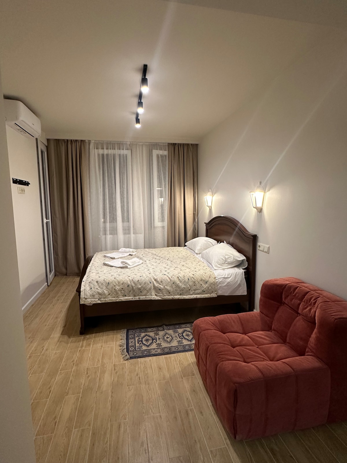 Clean and cozy apartment in the city center with a new renovation. Suitable for both short-term and long-term stays, it has everything you need. Marjanishvili Metro Station is a 5-minute walk away, there are 24-hour grocery stores nearby, many restaurants and cafes, including the popular place «Fabrika».