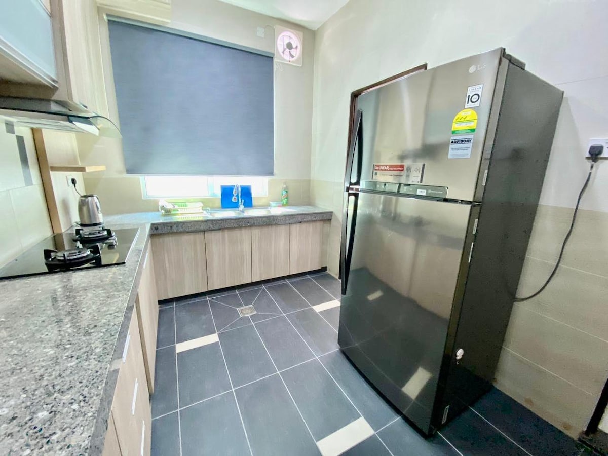 Auðvelt að bóka. Nútímaleg 3BR íbúð með loftkælingu og ÞRÁÐLAUSU NETI. Það tekur 5 mínútur að keyra til Hua Ho Tanjung Bunut, Coffee Bean & Tea Leaf og annarra verslana í nágrenninu. Jerudong Park er aðeins í 10 mínútna akstursfjarlægð. Hér er hægt að fá McD og aðra matarbása. 5 mínútna gangur niður á við og til hægri að rútustöðinni. $ 1 fargjald til höfuðborgarinnar og það tekur 20 mínútur að komast til höfuðborgarinnar fer eftir umferð og stoppistöðvum.