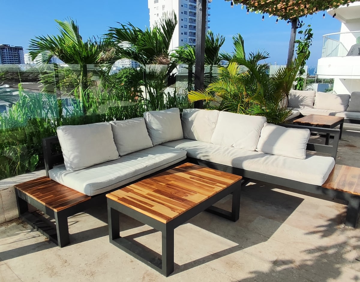 🌊 Verið velkomin í glæsilegu og nútímalegu risíbúðina þína á 11. hæð með mögnuðu útsýni yfir sjóinn, Malecón og Bocagrande. Þessi bjarta og notalega eign er hönnuð til þæginda og afslöppunar. 🚧 Athugaðu: Byggingin er enn í byggingu svo að þú gætir stundum séð starfsfólk á ganginum. 🚨 Til öryggis: Aðeins skráðir gestir eru leyfðir. Engir óskráðir gestir eru leyfðir.
