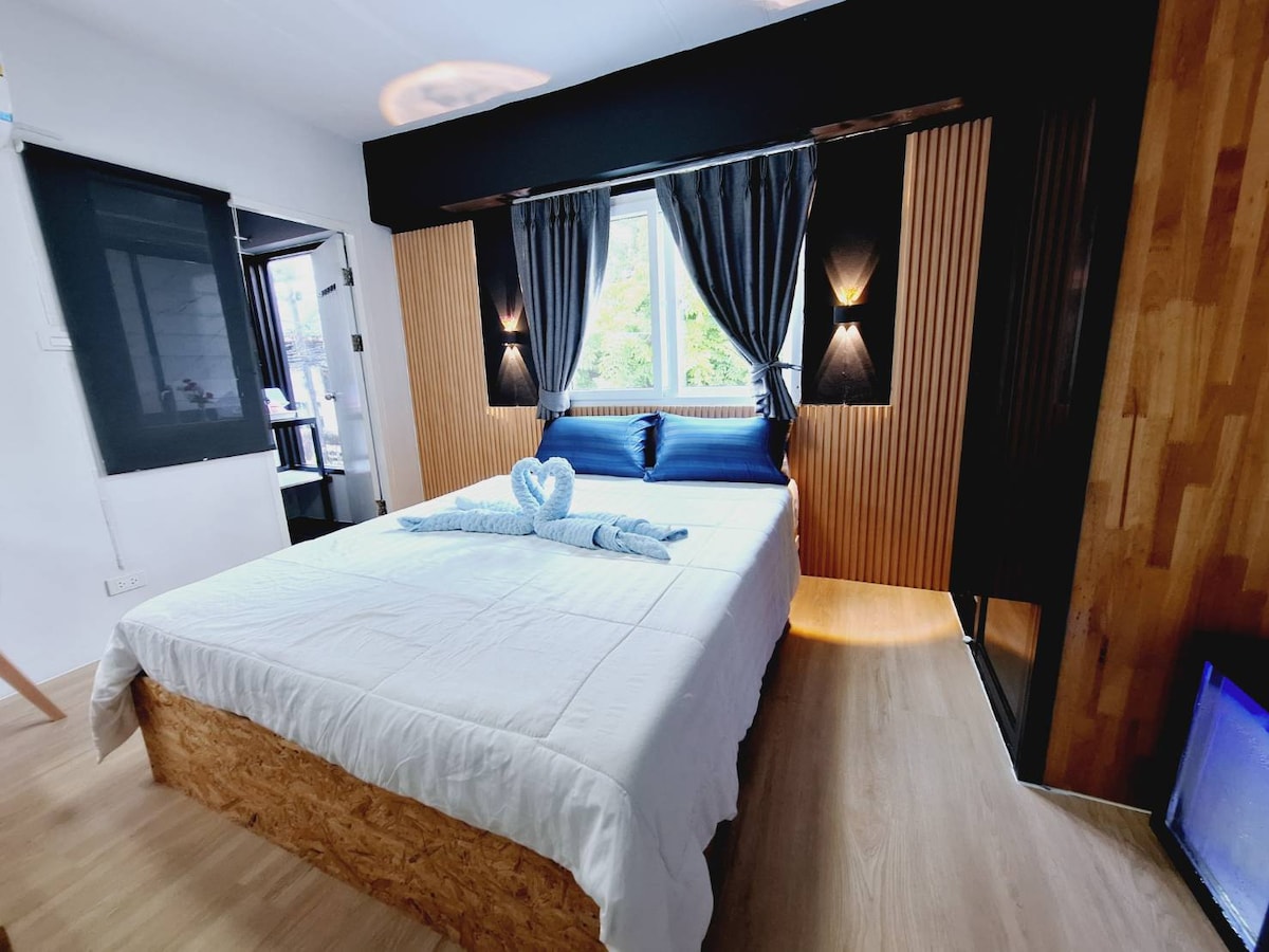 Njóttu notalegs 24 fermetra stúdíós í aðeins 5 mínútna fjarlægð frá Bearing BTS. Þessi nútímalega íbúð er með dagsbirtu, myrkvunargluggatjöld og einkaeldhúskrók með nauðsynjum. Það er staðsett í friðsælu Bangna og er umkringt staðbundnum mörkuðum og matsölubásum. Sameiginleg byggingaraðstaða felur í sér líkamsræktarstöð, þvottahús og stofu. Öryggi allan sólarhringinn er fullkomið fyrir örugga og stresslausa dvöl. BTS er í aðeins 40 mínútna fjarlægð frá miðborg Bangkok