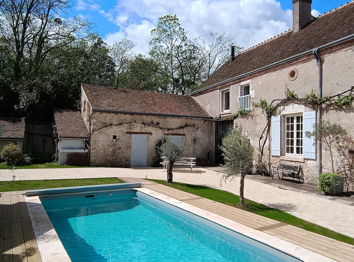 Við bjóðum þig velkomin/nn á tvö hundruð ára gamla býlið okkar! Þú munt njóta þess að gista í nýju endurbyggðu, notalegu íbúðinni okkar (stofu niður stiga og svefnherbergi/eldhús á fyrstu hæð) sem er fullkomlega staðsett í heillandi þorpi í Loire-dalnum. Þú færð sérstök afnot af hlýju sundlauginni, húsinu og fallegum og blómlegum húsagarðinum. Upphitað sundlaug er í boði frá apríl til október