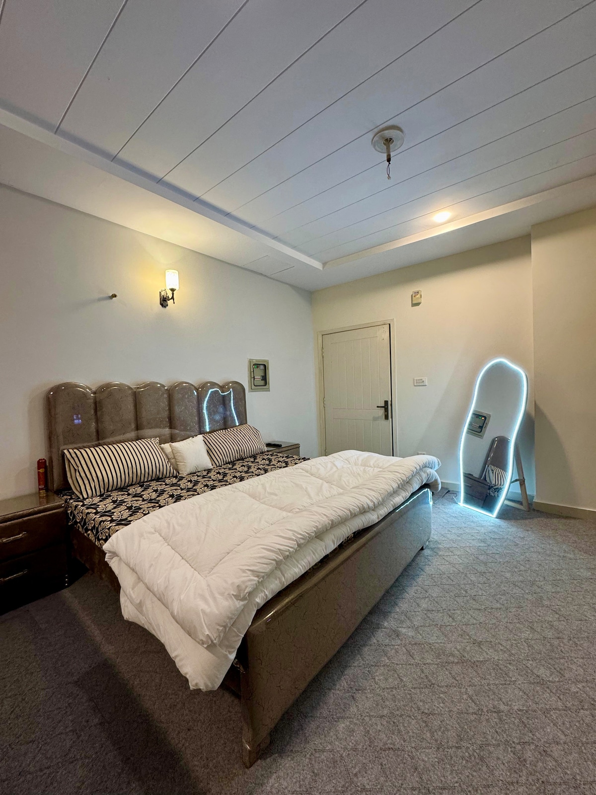 Escape to our serene bedroom oasis, perfectly suited for couples and small families seeking a relaxing getaway .Enjoy a comfortable night's sleep in our cozy bedroom . The apartment features a comfortable bed, a well-equipped kitchenette, and a fully smart tv, air conditioner, 24/7 internet, electric heating rod for hot water. Located in a prime location, you'll have easy access to nearby attractions such as imtiaz mall, Buch international hospital, cinema and restaurants .