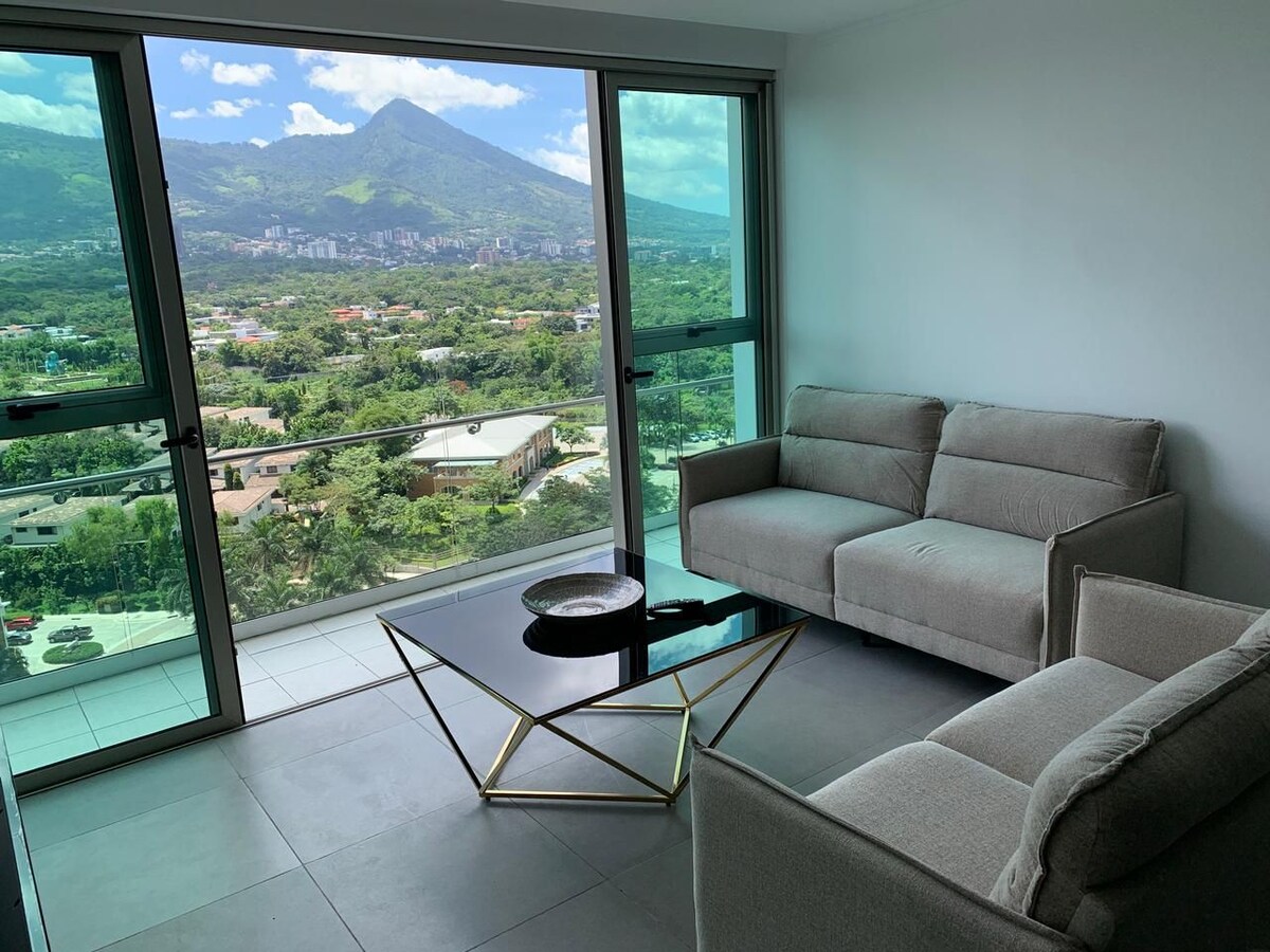 Modern apartment with stunning views of San Salvador Volcano, perfect for 2 guests. Includes 1 bed, 200 Mbps Wi‑Fi, and everything for a comfortable stay. Centrally located in a premium condo with 24/7 security, pool, gym, game room, outdoor cinema, climbing wall, and a sky lounge. Ideal for working remotely or enjoying a relaxing city escape!