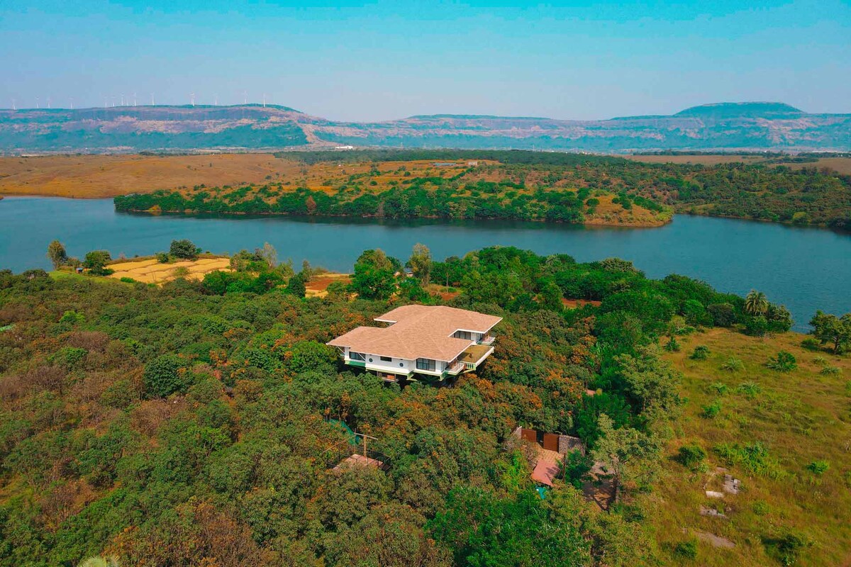Lúxusvilla við stöðuvatn með 4 svefnherbergjum | Nihira Farms @Kamshet