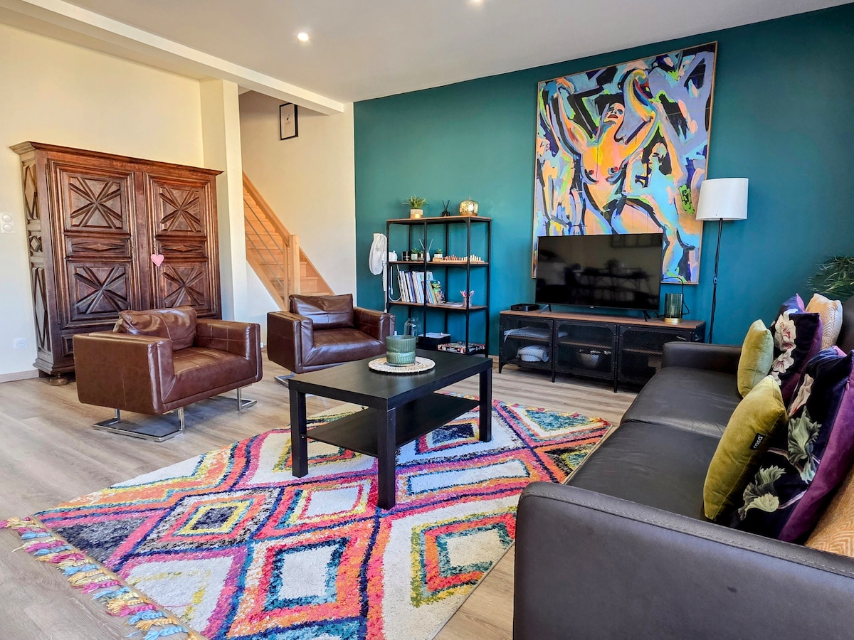 Fallegt 2 svefnherbergi staðsett í „Vieux Schiltigheim“. Þú kemst í miðborg Strassborgar á 11 mínútum með sporvagni, að viðskiptahverfinu Wacken (í minna en 10 mínútna göngufjarlægð), að evrópska viðskiptasvæðinu á 10 mínútum með bíl. Ókeypis einkabílastæði/4k 140 cm sjónvarp - Netflix og Amazon Prime áskrift innifalin Nauðsynjar hússins verða til staðar: vel búið eldhús (spaneldavél, diskar, ofn, brauðrist, ketill), rúmföt, snyrtivörur o.s.frv.