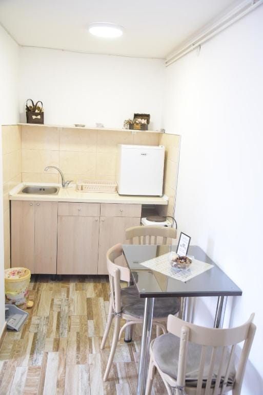 Micro apartment in Bitola center with a gorgeous view on the iconic Clock Tower. Kitchenette, Netflix, early check-in, late check, out self check-in and other perks such as free parking and hi-speed wi-fi are available to our visitors. The place is designed as distinctly different from than the traditional hotel experience and for travelers who expect more from their accommodation.