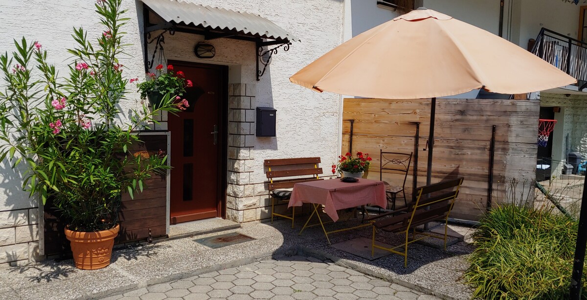 Hay Apartment Bled er notaleg stúdíóíbúð á jarðhæð með einkagarði. Vel búið eldhús, king-size rúm (200*200), baðherbergi, sófi með sjónvarpshorni og lítill garður með setustofu. Endurnýjað árið 2022. Tilvalið fyrir tvo gesti. Ókeypis einkabílastæði eru fyrir framan íbúðarhúsið. Staðsetning Hay er í miðbæ Bled og er í 10 mínútna göngufjarlægð frá Bled-vatninu. Strætisvagnastöð (Bled Union), bakarí, bensínstöð, veitingastaðir og staðbundinn markaður eru í næsta nágrenni.