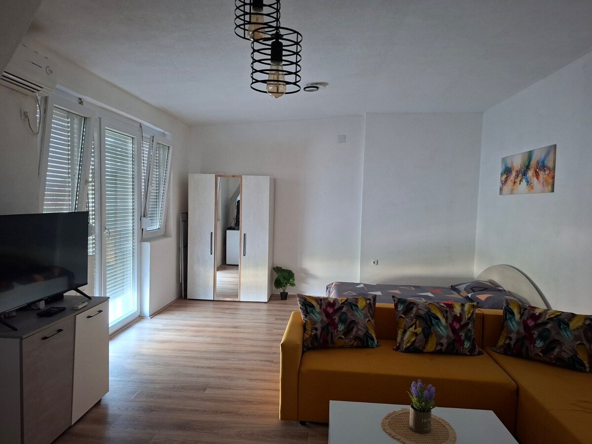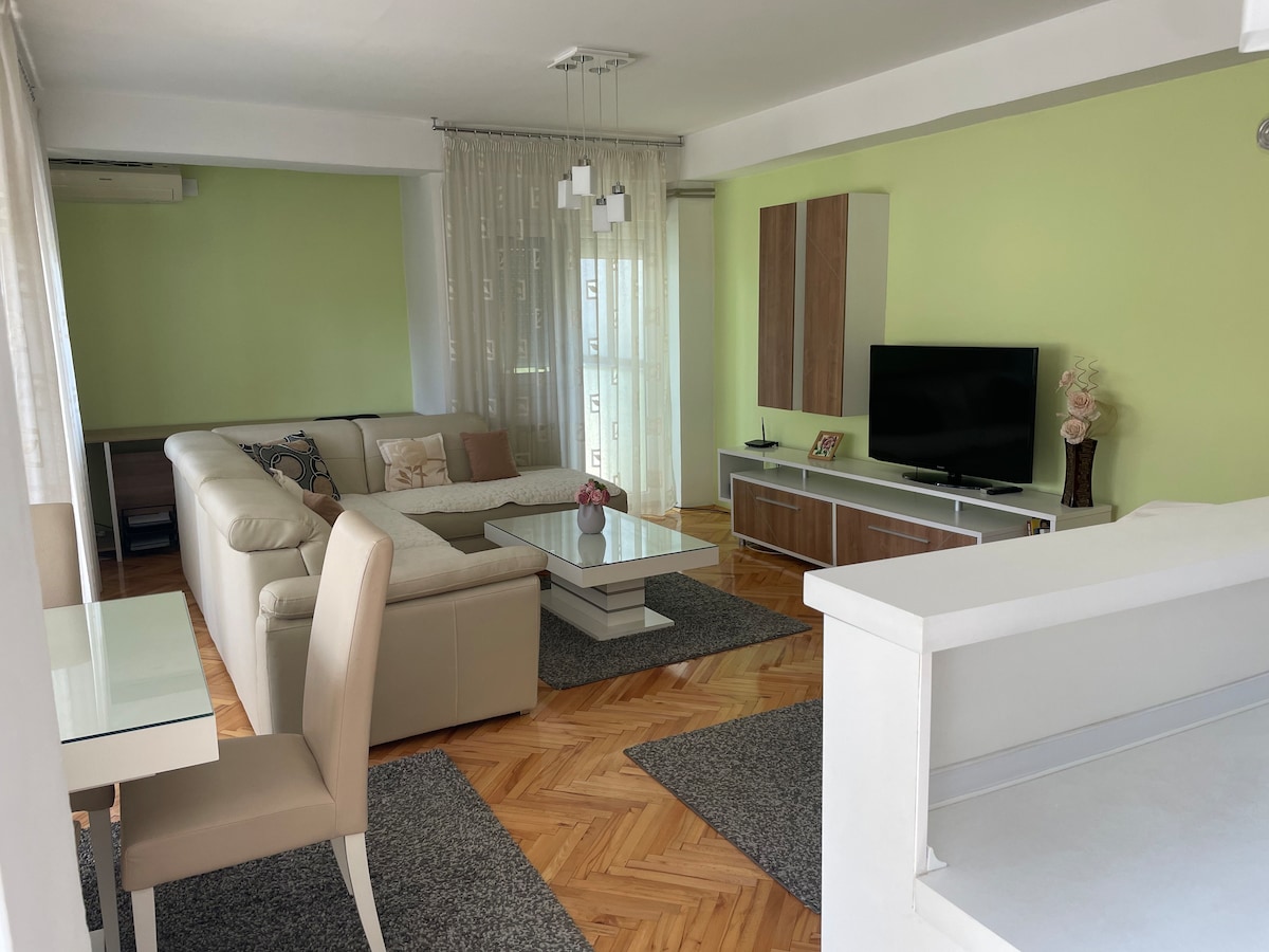 Rúmgóða 80 fermetra íbúðin okkar er fullkomin fyrir fjölskyldur eða litla hópa. Á þessu notalega heimili eru tvö þægileg svefnherbergi, björt stofa, fullbúið eldhús og nútímalegt baðherbergi. Í friðsælu og öruggu hverfi finnur þú allt sem þú þarft í göngufæri, þar á meðal markaði, apótek og veitingastaði. Miðborgin er í 5-7 mínútna göngufjarlægð og því er auðvelt að skoða áhugaverða staði á staðnum og njóta líflegs andrúmslofts.