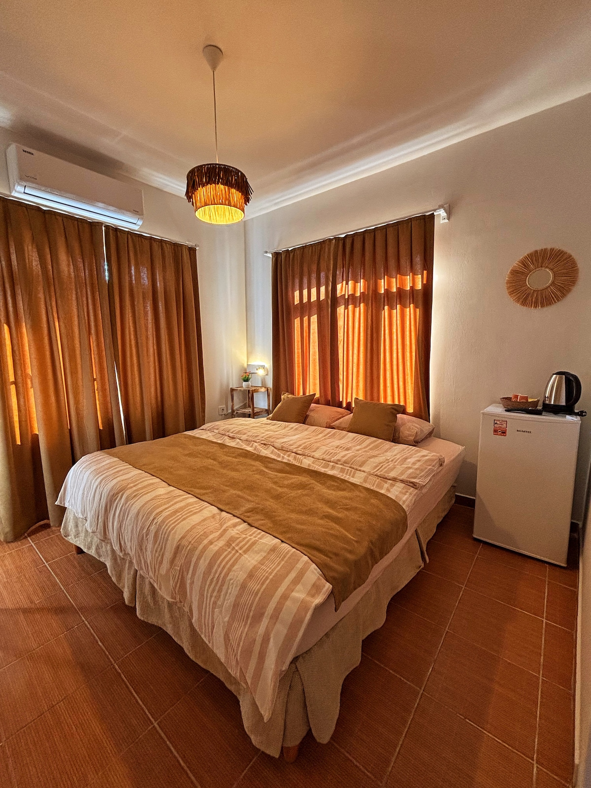 - Þú munt hafa mjög hrein og góð lykt af rúmfötum - Nýjar loftaðstæður - Rúmherbergi er úr gleri en þú ert með gluggatjöld - þú ert með fullkominn garð til að njóta kaffisins og lesa bókina þína. - við gefum þér alltaf þvottavéladuft til að þvo föt - við erum með straujárn - við skiljum alltaf eftir kaffi/te fyrir þig athygli: áætlanir fljúga á okkur og geta verið hávaði p. s.: Vegna laga á staðnum þurfum við að framvísa skilríkjum/vegabréfi sem afriti