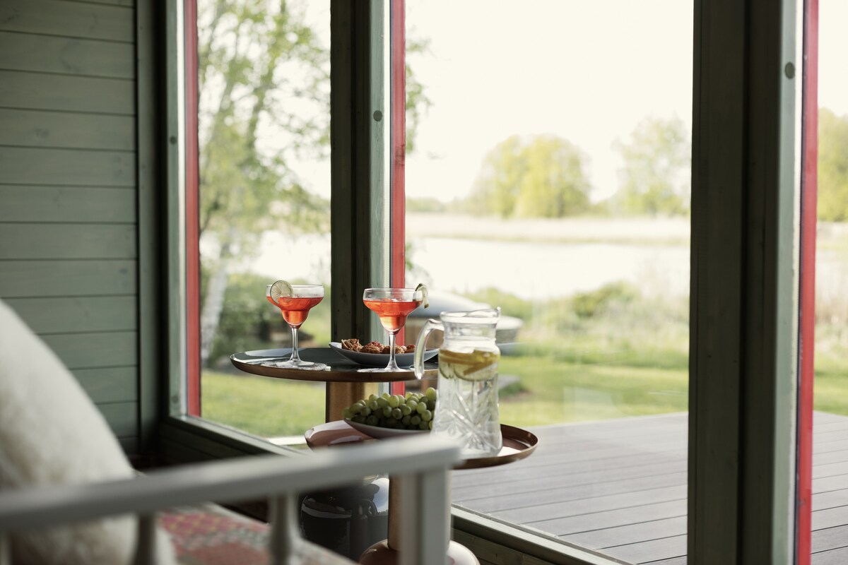 Fallegt náttúrulegt orlofsheimili með gufubaði við vatnið. Fullkomið fyrir átta manns. Eigendur búa í hinu húsinu í nágrenninu (má sjá á myndum). Gestir hafa aðgang að öllu orlofsheimilinu. Á staðnum er blakbolti, körfubolti, strönd og nóg af grænum svæðum. Einnig er hægt að leigja bát og fara í kringum vatnið. Vatnið er staðsett um 90 m frá húsinu í beinni línu. Einkaströnd er um 150 m til að mynda húsið hinum megin við götuna.