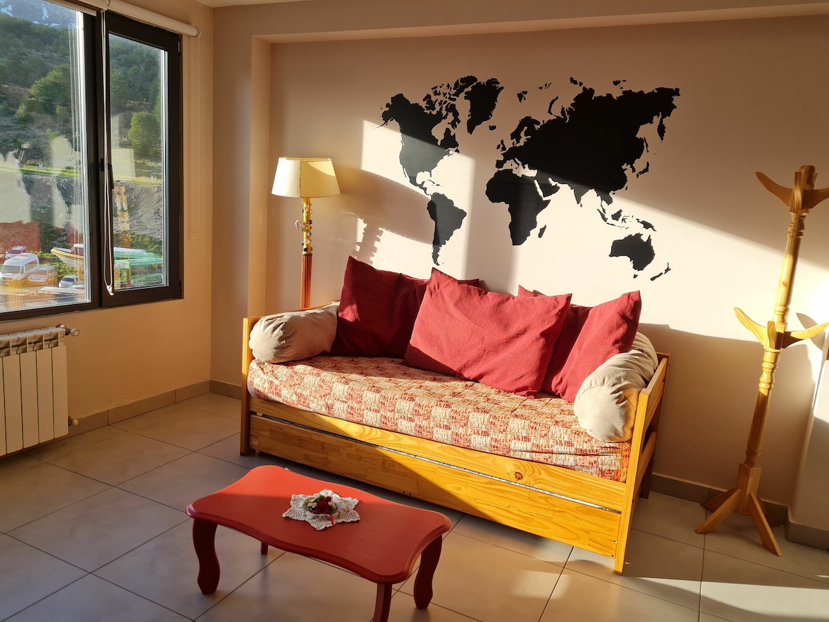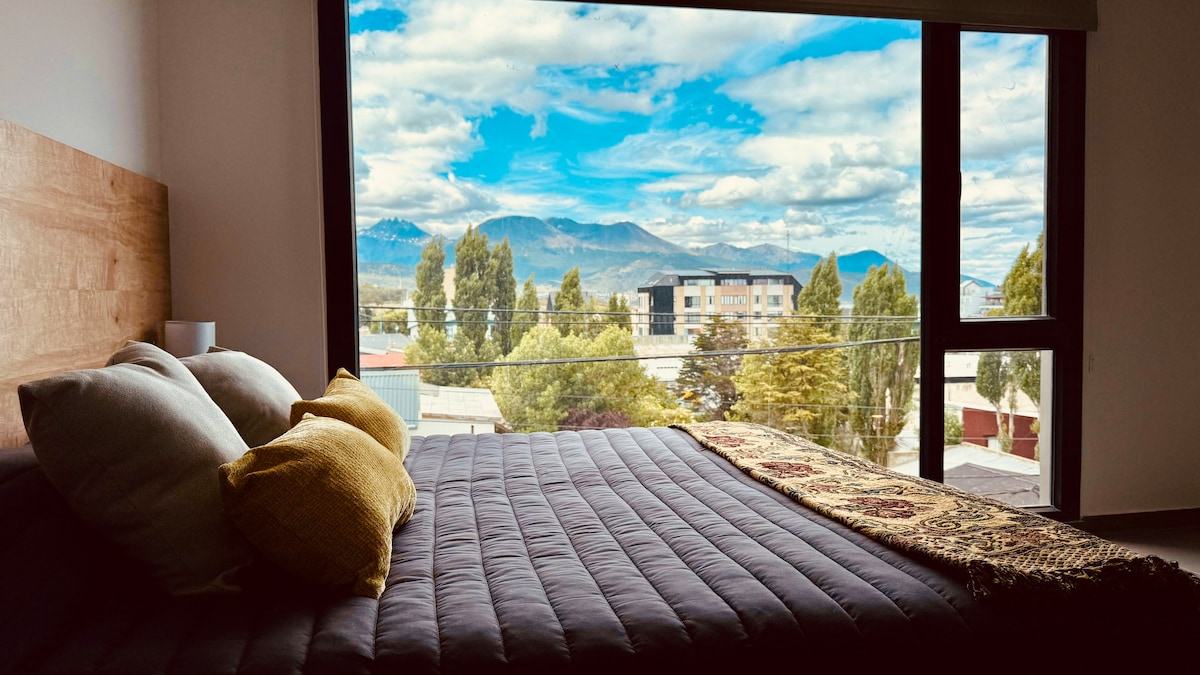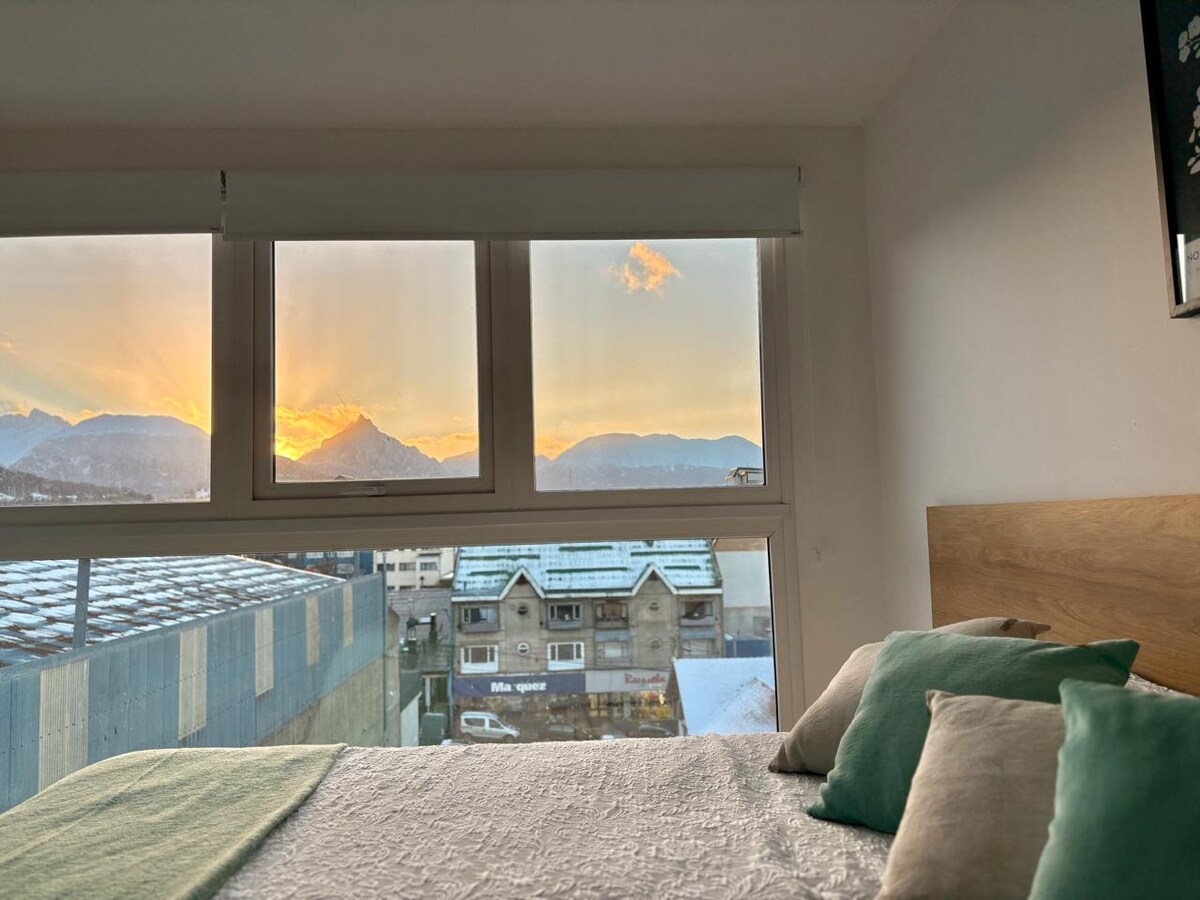 Verið velkomin á heimili þitt að heiman í syðstu borg heims! Þessi íbúð, sem staðsett er í hjarta Ushuaia, býður upp á magnað útsýni yfir tignarleg Andesfjöllin. Fullkominn staður fyrir eftirminnilega dvöl og er fullbúinn til að tryggja þægindi, hvort sem þú slakar á eftir ævintýradag eða slakar á með heitum tebolla á meðan þú horfir á Andesfjöllin.