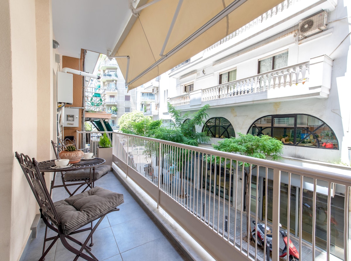 Einstök 1 svefnherbergi fullbúin íbúð á sjöundu hæð í uppgerðri byggingu frá 2020 með stórbrotnum veröndarsvölum. Háhraða internet, hágæða þægindi, lúxus queen size rúm og þinn eigin Netflix reikningur eru aðeins nokkur atriði sem við bjóðum þér. Lýsandi, rúmgott, með öllu sem þú gætir þurft til að njóta dvalarinnar í hjarta félagslífs Thessaloniki, aðeins í 5 mínútna fjarlægð frá Aristotelous-torgi og 2 mínútur frá sjávarsíðunni. Gaman að fá þig í hópinn og njóttu dvalarinnar!
