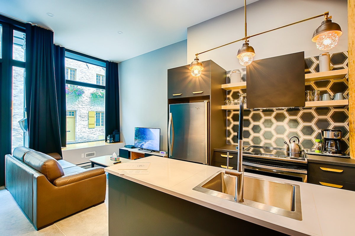 Heimsæktu gömlu Quebec og gistu í sögulegri byggingu sem var prentsmiðja snemma á síðustu öld og síðan skrifstofurými fyrir arkitekta eftir níunda áratuginn. Í hjarta Old Quebec eru allir sögufrægir staðir í göngufæri (Château Frontenac, Terrasse Dufferin, Place Royale, Notre-Dame-des-Anges, Plains of Abraham og fleira). Við erum umkringd nokkrum af bestu veitingastöðunum í Quebec-borg. CITQ: 303632 (gildistími 31/12/2026)