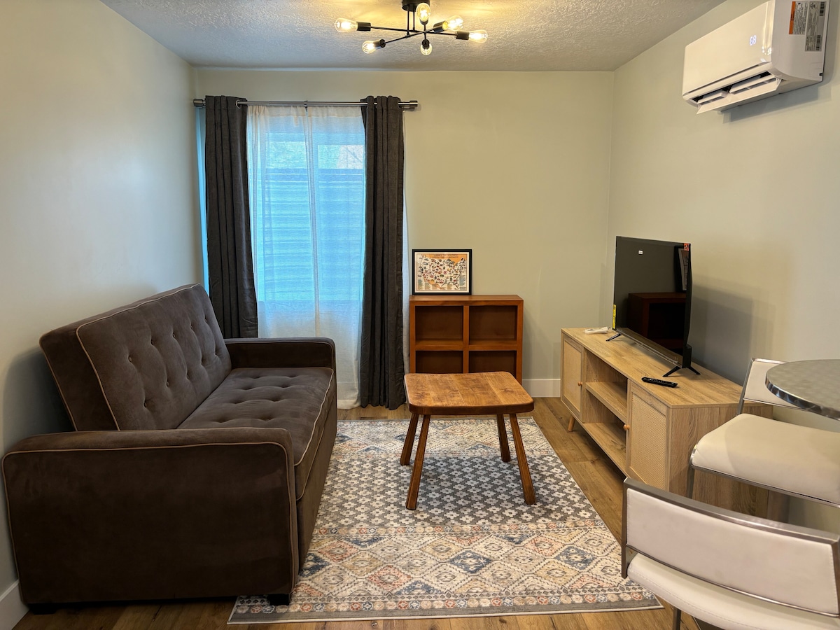 Njóttu þessa notalega bústaðar með einu svefnherbergi í hjarta miðbæjar Lehi. Gakktu út að borða eða í Wines Park. Sveiflaðu þér á veröndinni og njóttu þessa friðsæla og miðsvæðis heimilis í öruggu og dásamlegu fjölskylduhverfi. Búðu til máltíðir heima eða njóttu fjölbreyttra nálægra veitingastaða eða skyndibita. Heimilið hefur nýlega verið endurbyggt að fullu og öll eldhústæki eru ný. Baðherbergið er alveg nýtt. Það er nálægt I-15, verslunar-, Adobe- og Silicon Slopes tæknifyrirtækjum.