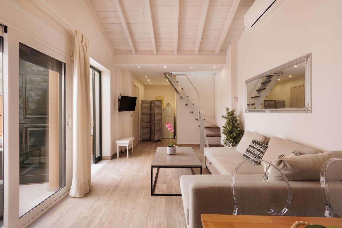 "Viaggio" is one of the very few surviving low rise terraced houses of the Venetian period in the whole of the historical centre of Corfu Town. Situated in a picturesque alley a few steps from Spianada Square, everything the Old Town has to offer is quite literally on your doorstep. A home of generations innovatively restored into a luxurious yet home for visitors who seek to experience the island as locals, without compromising on quality. The apartment is located on the ground & 1st floor.