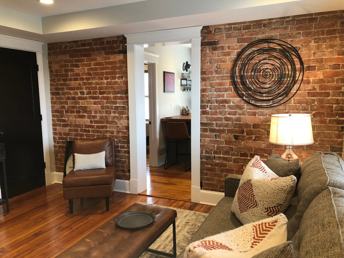 Location, Location! A completely renovated apartment in the highly desirable center Winchester. You’ll still be able to see some of its original character throughout this historic building. The apartment has a fully stocked custom kitchen with reclaimed wood and quartz counters, coffee nook with Keurig, large tile shower with glass doors, hardwood floors, queen memory foam mattress, high speed Wi-Fi, 50’ smart TV, Xfinity HDTV with voice remote control, AC/Heat, Washer/Dryer, and dishwasher.