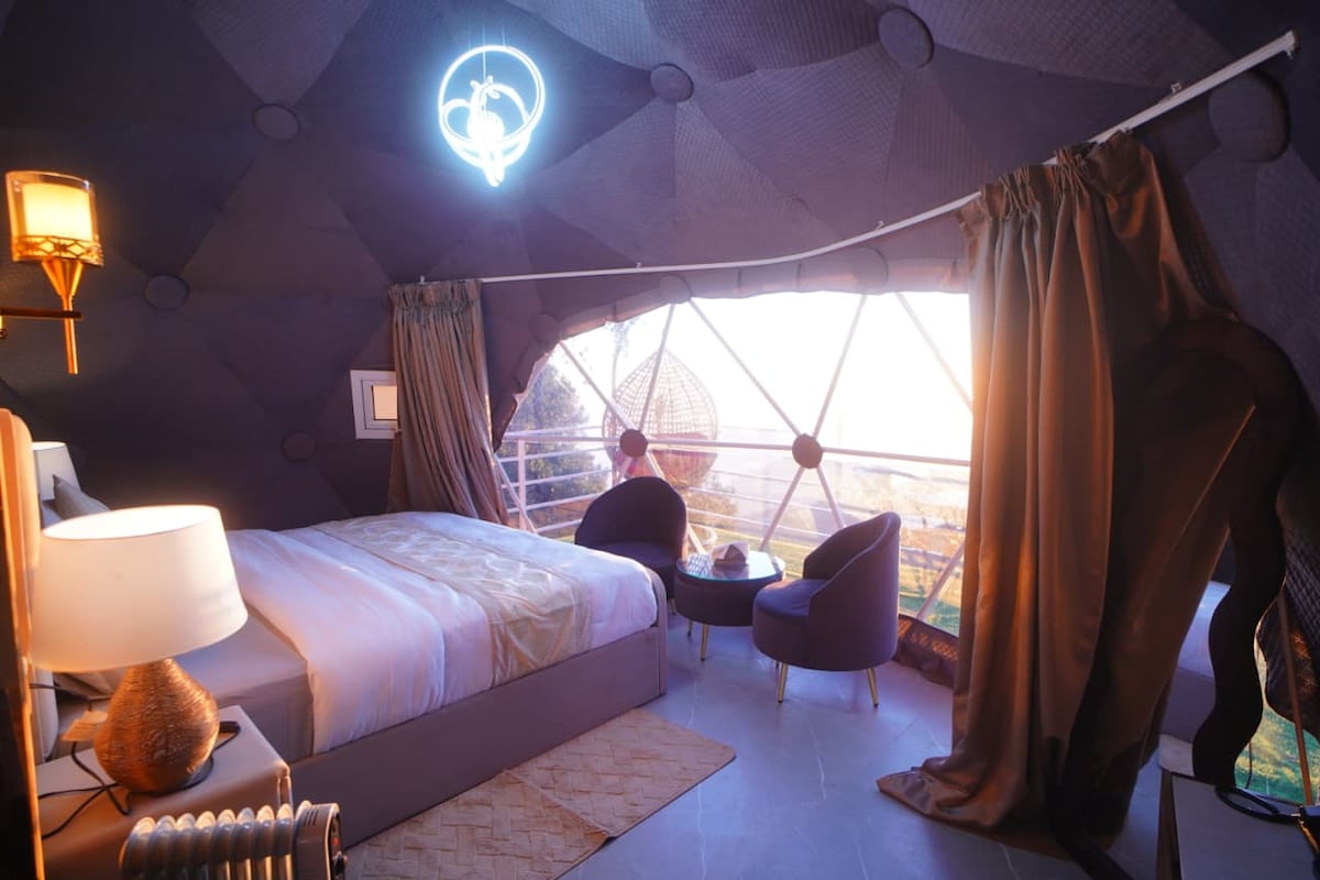 Verið velkomin í Sapphire Suites, Mussoorie, fullkomna fjallaafdrepinu! Þetta herbergi 1 með fjallaútsýni býður upp á þægindi, lúxus og töfrandi útsýni yfir Himalajafjöllin — hannað fyrir gesti sem elska frið, næði og úrvalsgestrisni. ✨ Það sem þú munt elska: Rúmgott og glæsilega hannað svefnherbergi með notalegri lýsingu Einkasvalir með töfrandi útsýni yfir fjöll og dal Queen-rúm með úrvalsrúmfötum Nútímalegt baðherbergi með heitu vatni allan sólarhringinn