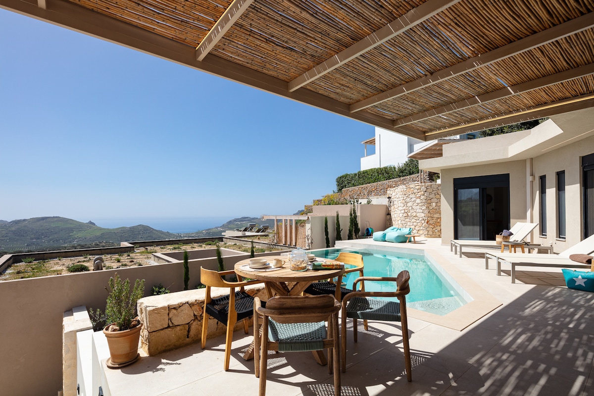 Seaview in South Crete Villa w/Heated Pool and BBQ