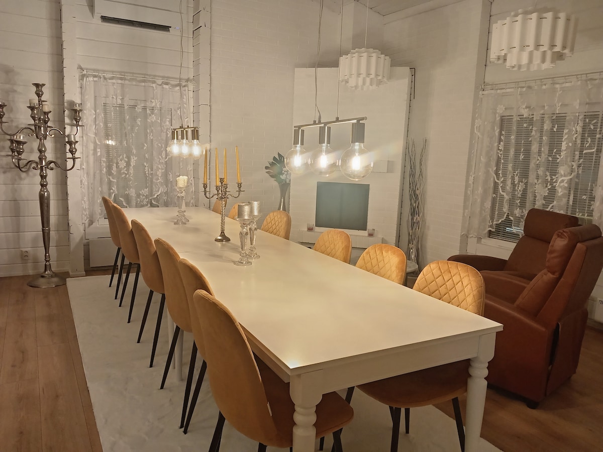 Set in a peacefull Finnish countryside, Villairene is an all year VACATION and PARTY playground. This Villa has sleeping places for up to 12-14persons. The Villa is host parties, sauna evenings, bachelor parties, ladies nights, slumber party, meetings etc. It is also perfect for a countryside holiday. The Villa has well equipped modern kitchen, woodfired Hot tub Finnish smoke sauna for additional fee. There is an indoor Sauna and Grill house that guest can use for free.