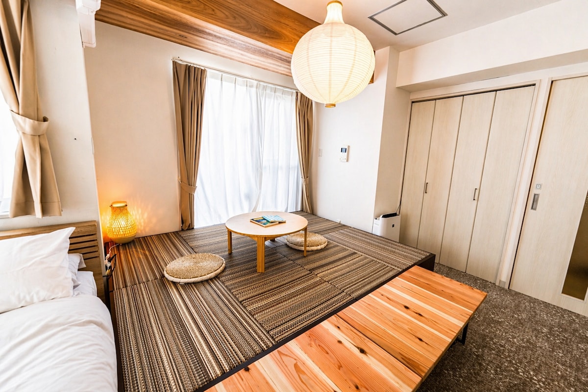 Sjávarútsýni · 3 svefnherbergi · Rúmgott 55㎡ Njóttu stórfenglegs sjávarútsýnis frá þessari horníbúð á efstu hæð. Þessi rúmgóða 55㎡ íbúð er með 3 aðskildum svefnherbergjum, fullkomin fyrir fjölskyldur eða hópa. Aðeins 3 mínútna göngufæri frá Anchi-strönd sem er þekkt fyrir eitt tærasta vatn á aðal eyju Okinawa. Á fyrstu hæð byggingarinnar er vinsæl ísbúð og japanskt sælgætissmáhús. Þar er einnig boðið upp á morgunverð í notalegum japönskum stíl — mjög þægilegt!