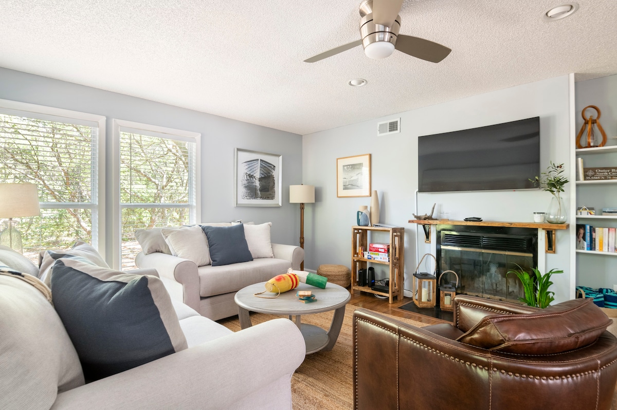 Faglega hýst hjá OBX Sharp Stays: Þú verður miðpunktur alls OBX. Verslanir, veitingastaðir og aðeins 0,8 km frá ströndinni. Þetta nýinnréttaða heimili frá 1900 er á fullkomnum stað fyrir strandferð. Þessi bústaður er staðsettur við rólega götu í friðsælu hverfi og liggur að Nags Head Woods sem býður upp á næði og friðsæld. Bústaðurinn er í göngu-/hjólafæri frá ströndinni, Dowdy's Park, KFUM, kaffihúsum, frábærum veitingastöðum og er í innan við 1,6 km fjarlægð frá Jockey's Ridge.