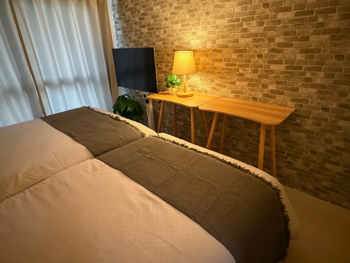 Family-friendly apartment on the top 10th floor, built in 2019. A drum-type washer-dryer allows washing and drying in one machine. Toys for children are provided. Matsubara Park is a 1-minute walk away. Two bicycles with child seats (ages 2–6) are available. Restaurants are nearby. 10 minutes to Osu Kannon Station, 11 minutes to Osu Shopping Street. Two double beds are placed side by side for safety.