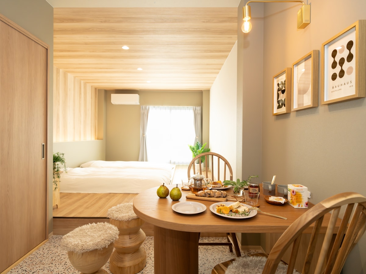 Þetta gistihús er fæddur árið 2019 og er í 8 mínútna göngufjarlægð frá JR Okayama Station. Það er fjögurra hæða bygging, önnur hæðin upp ytri stigann er inngangurinn og innandyra er maisonette gerð sem er tengd með innri stigi við þakið.Ytra byrðið er úr vestrænum stíl en þar er einnig herbergi í japönskum stíl með testofu. Við viljum tengjast fólki og hjálpa því að kynna svæðið.Þú getur komið með ýmsar tillögur fyrir ferðir til hins fallega Seto Inland Sea.Ég get aðstoðað þig við að fara í djúpa skoðunarferð í Setouchi... Einnig er hægt að ganga að mörgum listasöfnum og Korakuen, einum af þremur frægustu görðum Japan. Kuraku Aesthetic District er í 20 mínútna fjarlægð með lest og þú getur farið í dagsferð til Kyoto, Nara, Osaka, Kobe og Hiroshima eftir Shinkansen.Vinsamlegast skildu farangurinn eftir og ferðastu eins og heimamaður. Staðurinn er í miðbænum og hér eru því margar verslanir og veitingastaðir svo að þú getur notið dvalarinnar. Ég vona að þú getir notið ferðarinnar hér sem grunn, lesið bók í herberginu þínu og hitað upp vini þína með hópnum þínum... njóttu ótrúlegrar dvalar í villunni þinni.