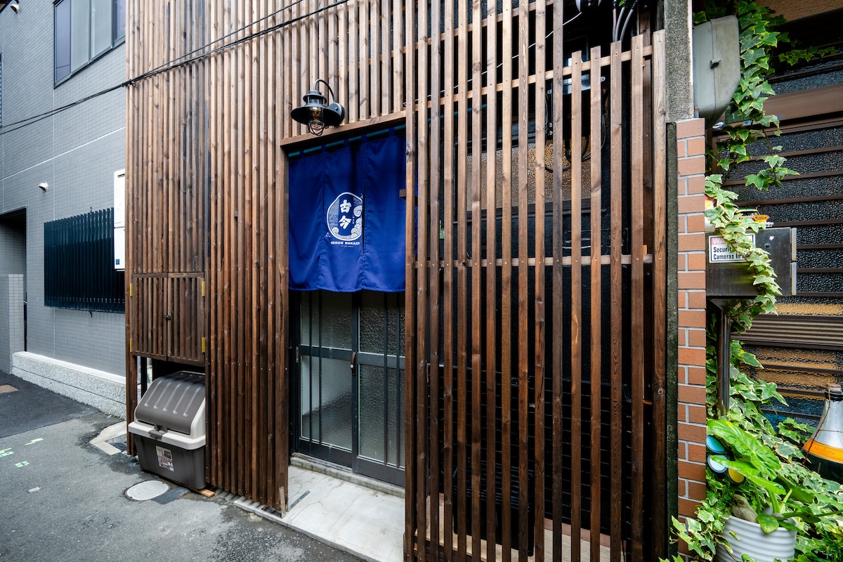 Þetta sögufræga hús frá 1909 er staðsett á Joto-hverfinu í Osaka og er sjaldgæfur eftirlifandi hús frá seinni heimstyrjöldinni. Það var endurbyggt árið 2015 af þekktum hönnuði og spannar 150㎡ og blandar saman sögulegum sjarma og nútímalegum lúxus í friðsælu afdrepi í miðborginni. Fáguð hönnunin samræmir fortíð og nútíð og býður upp á menningarlega innlifun og rúmgóð þægindi. Með tveimur baðherbergjum, aðskildum salernum, handlaugum og stóru baði tryggir hún næði og hreinlæti fyrir hópa. Upplifðu menningu, sögu og þægindi sem þú bíður upp á í hinni fullkomnu gistingu í Ósaka.