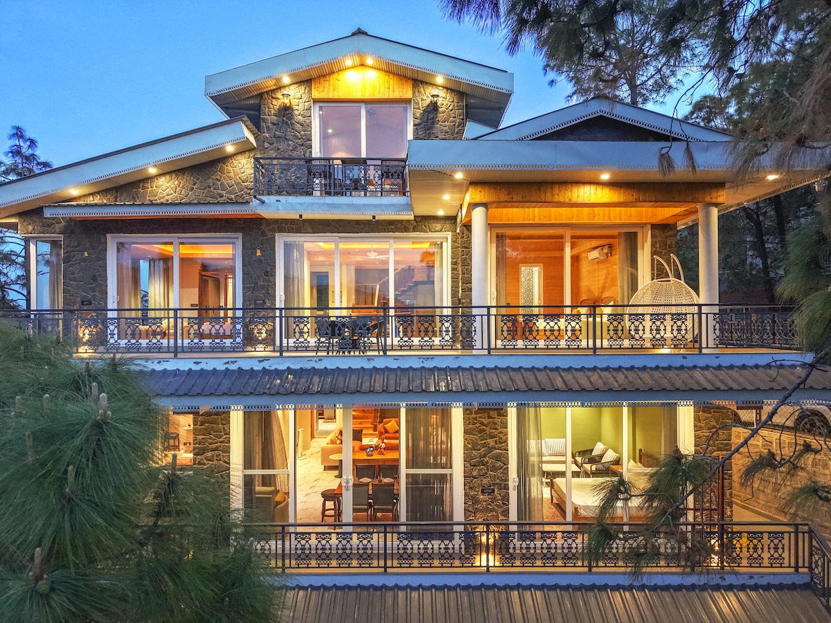 Gistu í einu af fallegustu og einstöku húsunum á Indlandi. Conde Nast Traveller tímaritið er lýst sem „glæsilegt“ og sem „kóróna á fjalli“. Húsið opnast inn í 2300 hektara verndaðan skóg á annarri hliðinni. Smekklega hannað og innréttað með fimm stjörnu gæðadýnu og rúmfötum í svítunni hefur hún unnið til virtra hönnunarverðlauna. 360 gráðu ótrúlegt útsýni, heimalagaðar máltíðir, sedrusviðarskógur, bál, rafmagnsketill o.s.frv.