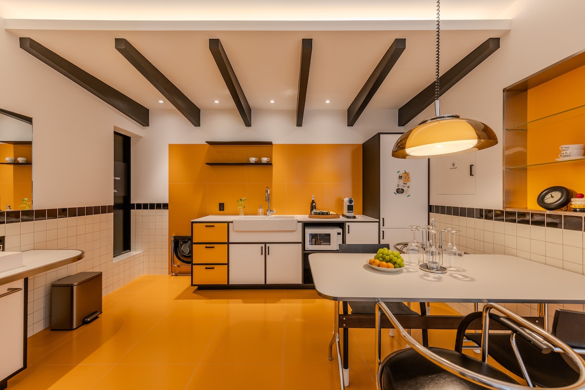 This cozy house in Namcheon-dong, Busan, is located near the Gwangalli Beach. The small garden and terrace offer a relaxing atmosphere, filled with the sea breeze and the scent of grass The spacious living room features a large oval table, perfect for enjoying coffee or working on your laptop. The kitchen boasts a coffee bar and Bluetooth speakers, creating a café-like atmosphere. Motive Studio, originally the host's brand studio, now serves as a space for guests to share their personal style.