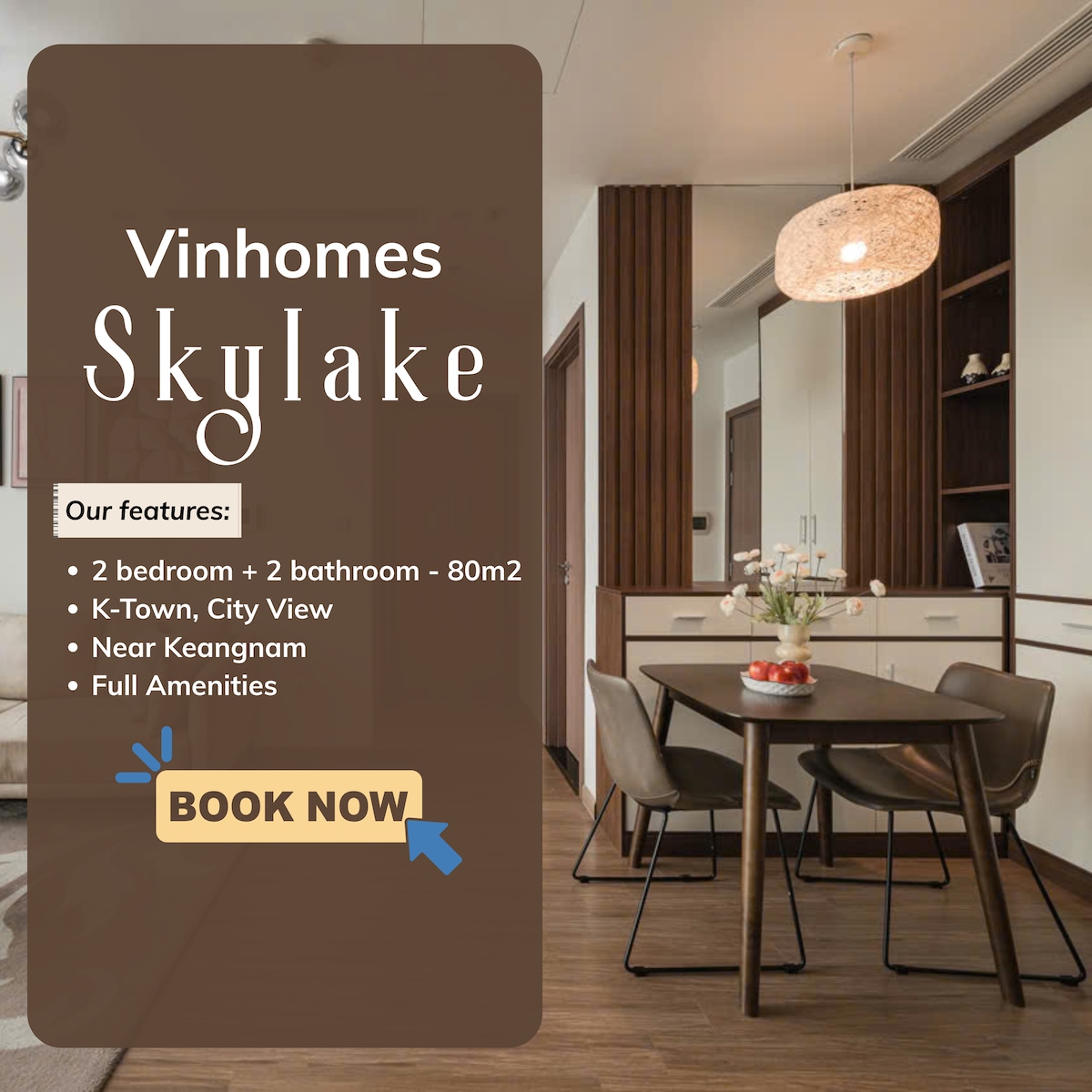 Chào mừng quý khách đến với Vinhomes Skylake – điểm chạm của phong cách sống chuẩn mực giữa trung tâm Hà Nội. Dự án tọa lạc tại vị trí vàng Phạm Hùng, nơi kết nối hoàn hảo giữa nhịp sống năng động và tiện nghi hiện đại. Tại đây, quý khách sẽ được tận hưởng chuỗi tiện ích đạt chuẩn 5 sao như hồ bơi ngoài trời, phòng gym hiện đại, spa thư giãn, TTTM Vincom, công viên xanh mát với hệ thống an ninh 24/7 đảm bảo an toàn tuyệt đối. Vinhomes Skylake – nơi mỗi ngày đều là một trải nghiệm sống đẳng cấp.