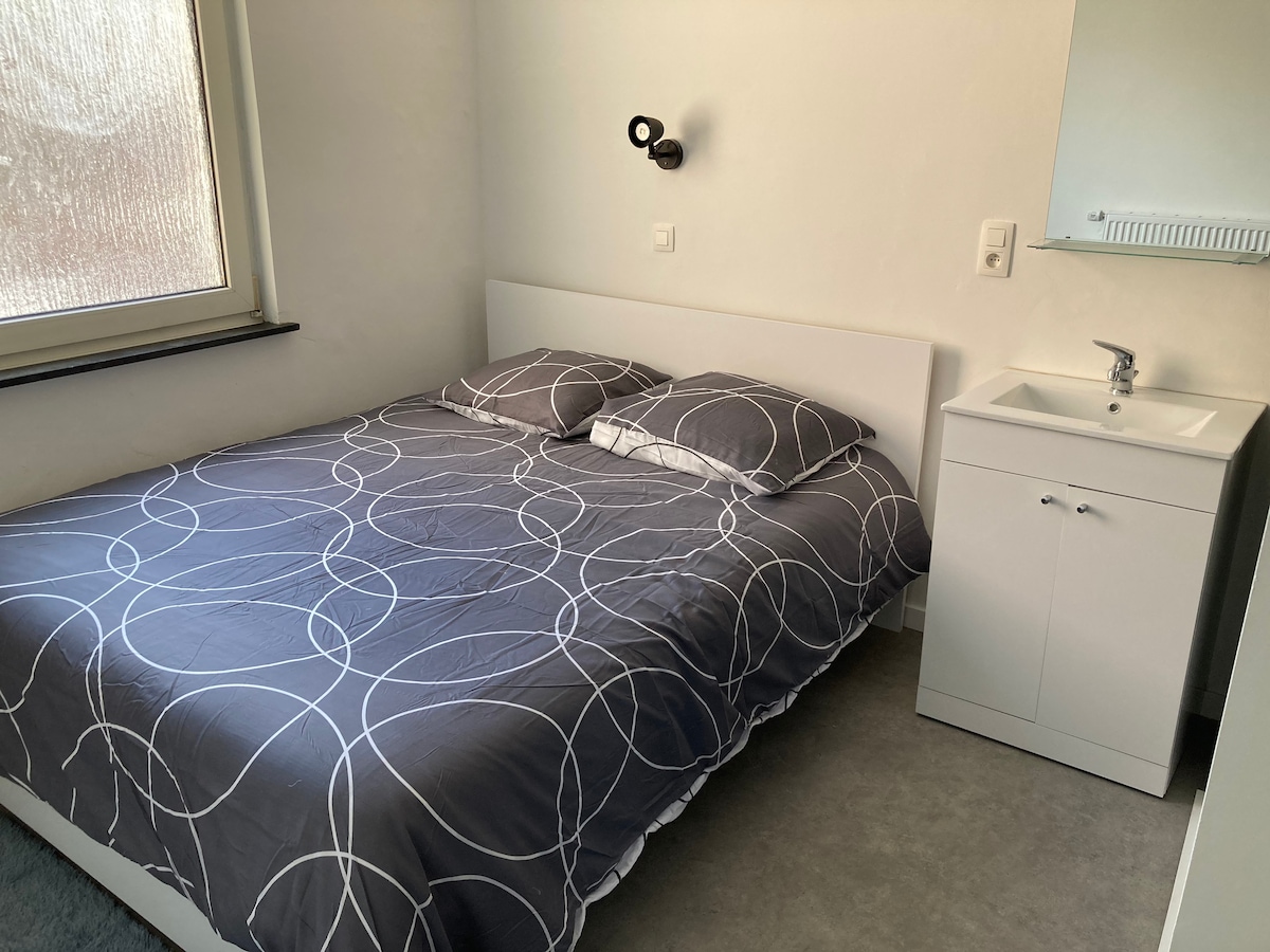 Verið velkomin í STH1, hlýlegan og nútímalegan kokteil í hjarta Saint-Hubert, innan belgísku Ardennes. Þetta heimili er algjörlega smekklega endurnýjað og sameinar nútímaleg þægindi, sveitalegan sjarma og náttúruleg efni: hráan við, stein, málm og ljós mætast fyrir róandi og einstakt andrúmsloft. 🛏️ 1 svefnherbergi með hjónarúmi (180x200cm) 🛁 Nútímalegt baðherbergi 🍽️ Fullbúið eldhús 🛋️ Notaleg og björt stofa Frábær gisting fyrir tvo milli náttúrunnar og þæginda.