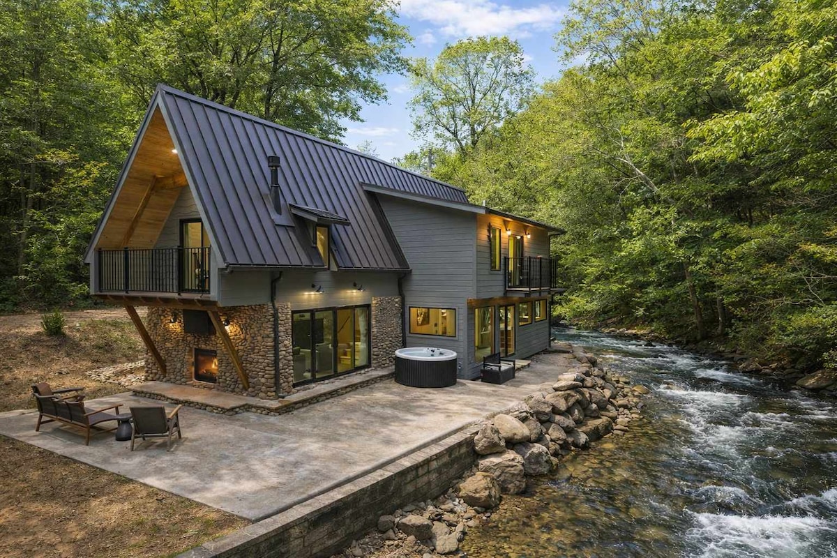 Luxe Waterfront A-Frame • Private Mountain Beach