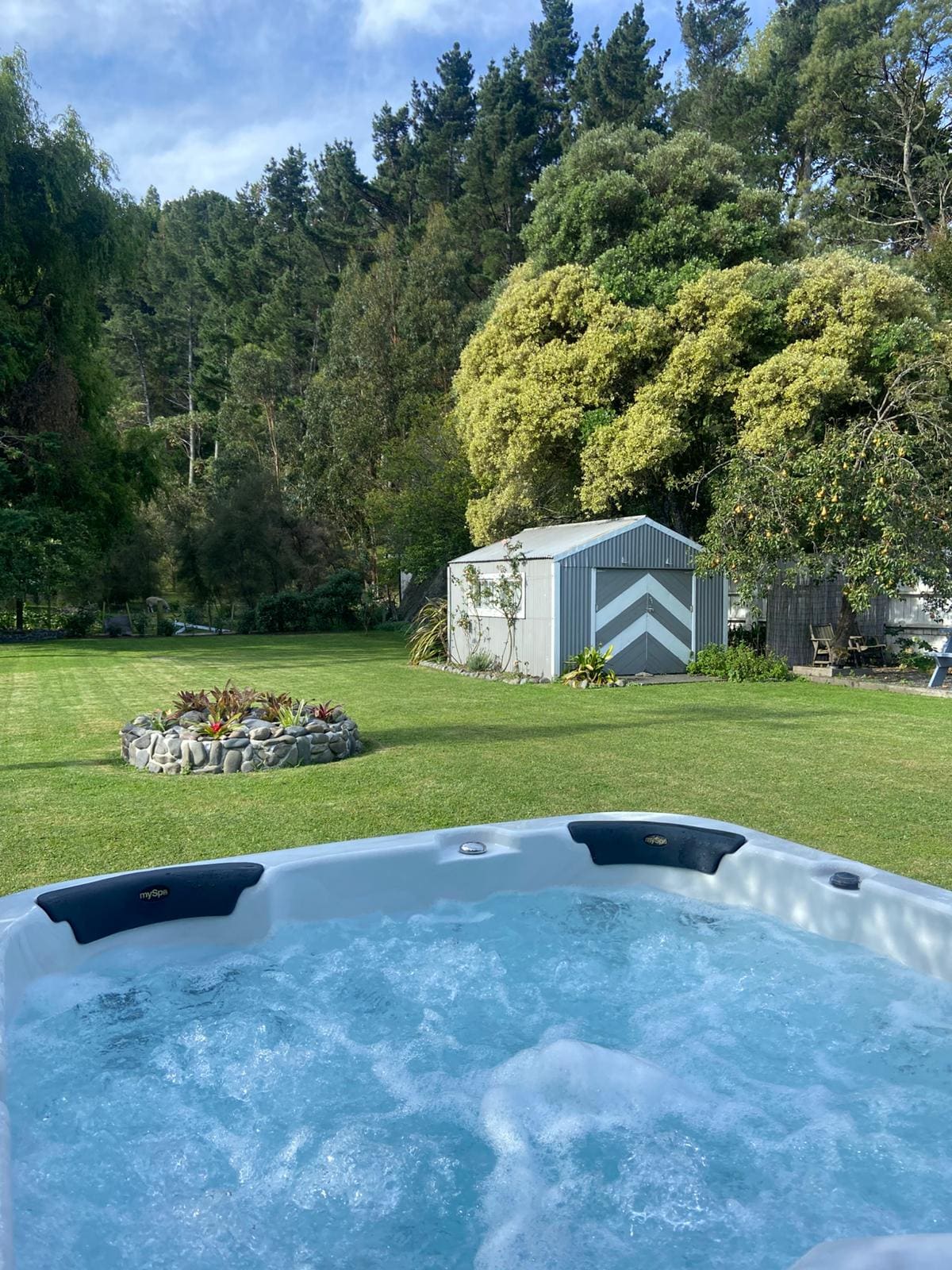 This cute little self contained studio cottage is situated in our back garden surrounded by a lovely garden and fruit trees. It has been beautifully decorated and is very well equipped. At the back of the cottage in a private fenced off area surrounded by grape vines is a spa pool for you to enjoy a romantic evening under the stars or just soothing those tired muscles. Complimentary pastries or muffins, fruit bowl, chocolates, tea, moccona coffee or plunger coffee, milo, milk & bottled water.