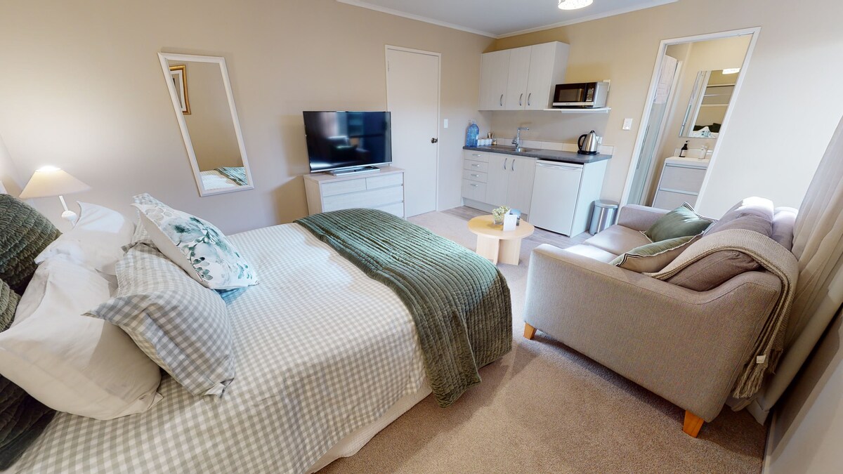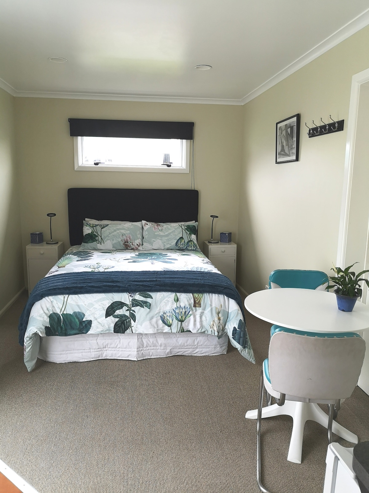 We offer our well appointed self-contained studio attached to our home. A private air-conditioned space with your own access through self check-in. Free off-street parking. A wonderful base for your Hawkes Bay stay. The separate bedroom has a queen size bed. You have a lounge with kitchenette, a large bathroom and separate toilet. A washing machine. There is a private, sun drenched courtyard with outdoor furniture, umbrella and Gas BBQ to relax and unwind after exploring our beautiful region